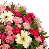 This pretty, traditional style posy arrangement takes on a slightly modern twist thanks to gerberas and bold colours. Perfectly complimented with the addition of tiny spray carnations.